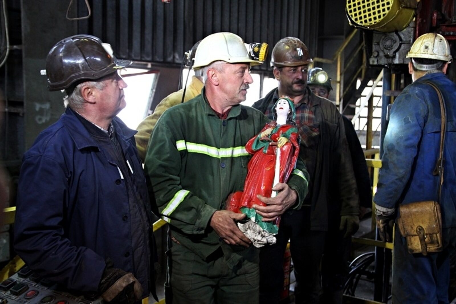 Figurka św. Barbary jako pierwsza opuściła klatkę, którą na powierzchnię wywieziono zabytkowe obiekty z kopalni Kazimierz-Juliusz