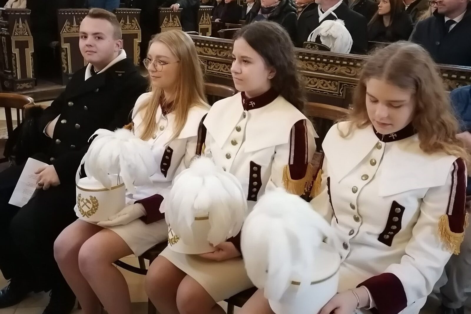 Jasne mundury uczennic kontrastują z tradycyjnymi męskimi.