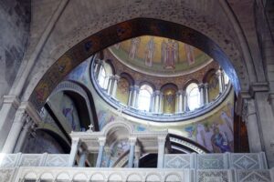 Bazylika była wielokrotnie niszczona i odbudowywana, ale zasadniczy jej kształt pochodzi z okresu wypraw krzyżowych, czyli z XI i XII wieku.