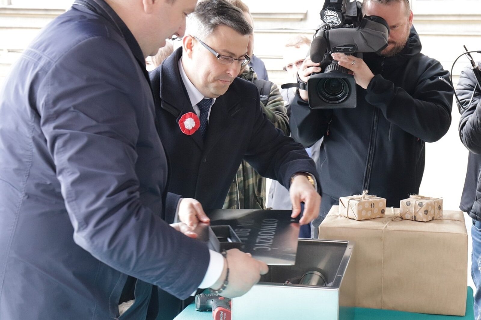 Wojewoda Jarosław Wieczorek i marszałek Jakub Chełstowski osobiście zakręcili śruby na wieku metalowej kapsuły, która otwarta zostanie najwcześniej za 90 lat