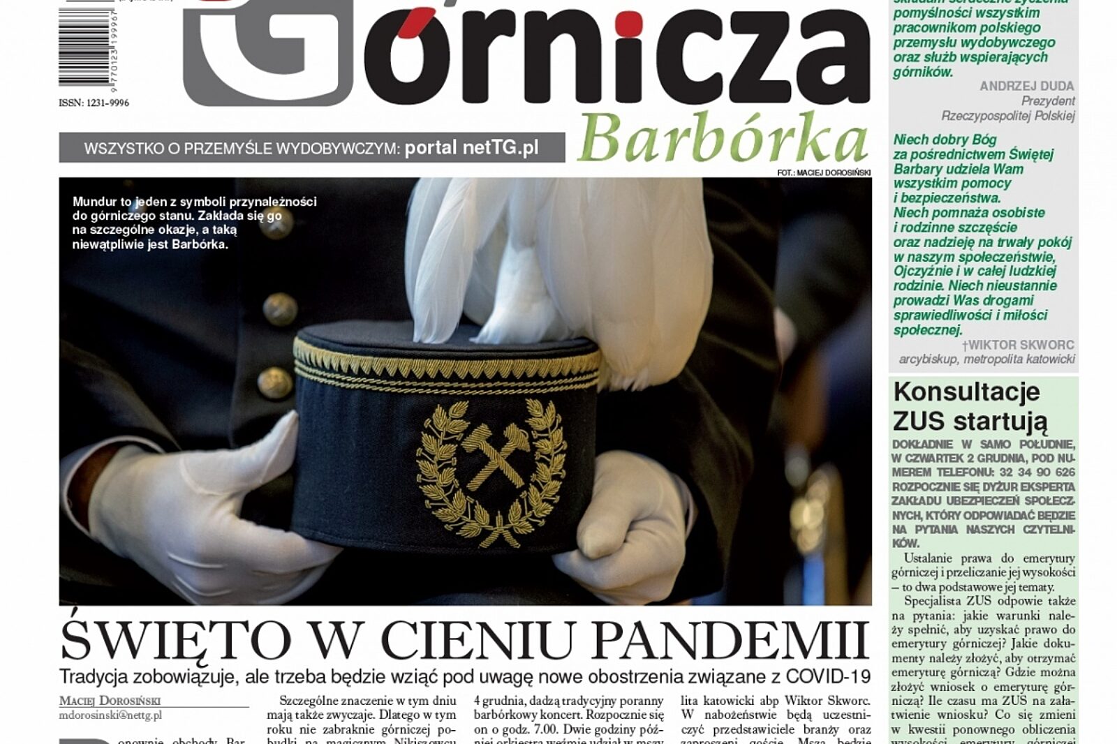 Ponownie obchody Barbórki odbywają się w cieniu pandemii. Nie zmienia to jednak faktu, że 4 grudnia jest świętowany przez górniczy stan. Na pewno, podobnie jak przed rokiem, mniej hucznie – bez akademii i karczm piwnych. Istotne są jednak symbole, jak choćby mundur i czako z pióropuszem, które jako jedne z pierwszych rzeczy kojarzą się ze świętem górniczego stanu. O tym oraz o przygotowaniach do Biegu 9 Górników, rozmowach w Brukseli, które zdecydują o przyszłości branży i regionu, nowym podatku węglowym – przeczytasz w najnowszym wydaniu Trybuny Górniczej. W niej także życzenia dla górników od prezydenta RP Andrzeja Dudy, abp. Wiktora Skworca, biznesu i samorządów.
