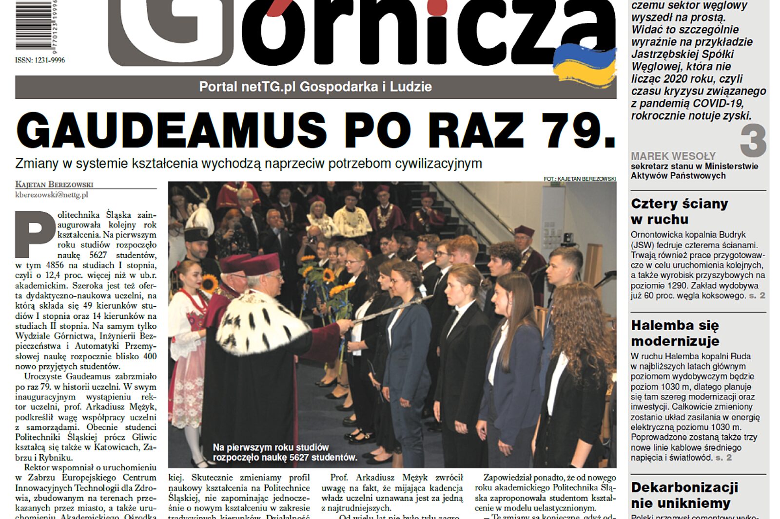 W piątek, 13 października ukaże się kolejny numer Górniczej. Na pierwszej stronie informujemy o rozpoczęciu nowego roku akademickiego w Politechnice Śląskiej. Jest to uczelnia ważna z punktu widzenia górnictwa, kształci bowiem kadry inżynieryjne dla branży.