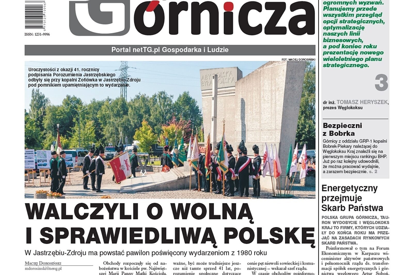 W najnowszym wydaniu Górniczej przeczytasz o 41. rocznicy podpisania Porozumienia Jastrzębskiego, przejęciu udziałów PGG, Tauron Wydobycie i Węglokoksu Kraj przez Skarb Państwa oraz święcie szczygłowickiej kopalni i przygotowaniach branży do czwartej fali koronawirusa. Zapraszamy do lektury już w czwartek!