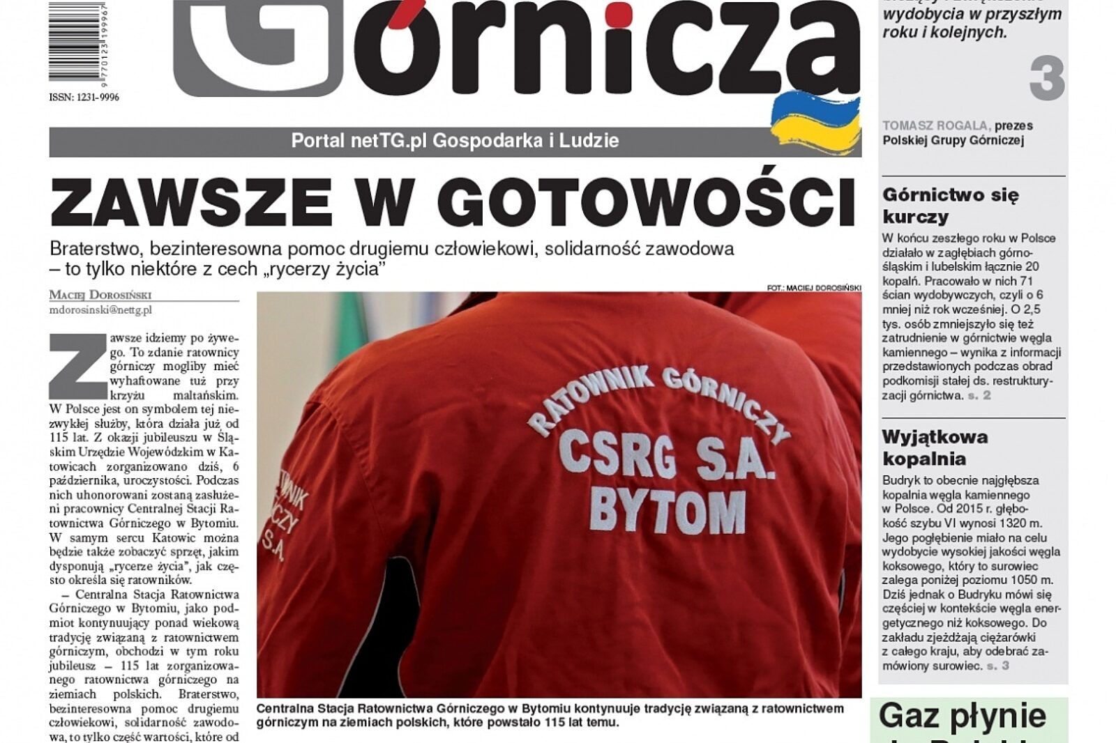„Zawsze idziemy po żywego. To zdanie ratownicy górniczy mogliby mieć wyhaftowane tuż przy krzyżu maltańskim. W Polsce jest on symbolem tej niezwykłej służby, która działa już od 115 lat” – pisze autor. Na tej samej stronie relacja z inauguracji kolejnego roku akademickiego w Politechnice Śląskiej. Gaudeamus zabrzmiało także w Politechnice Wrocławskiej i Akademii Górniczo-Hutniczej w Krakowie.
