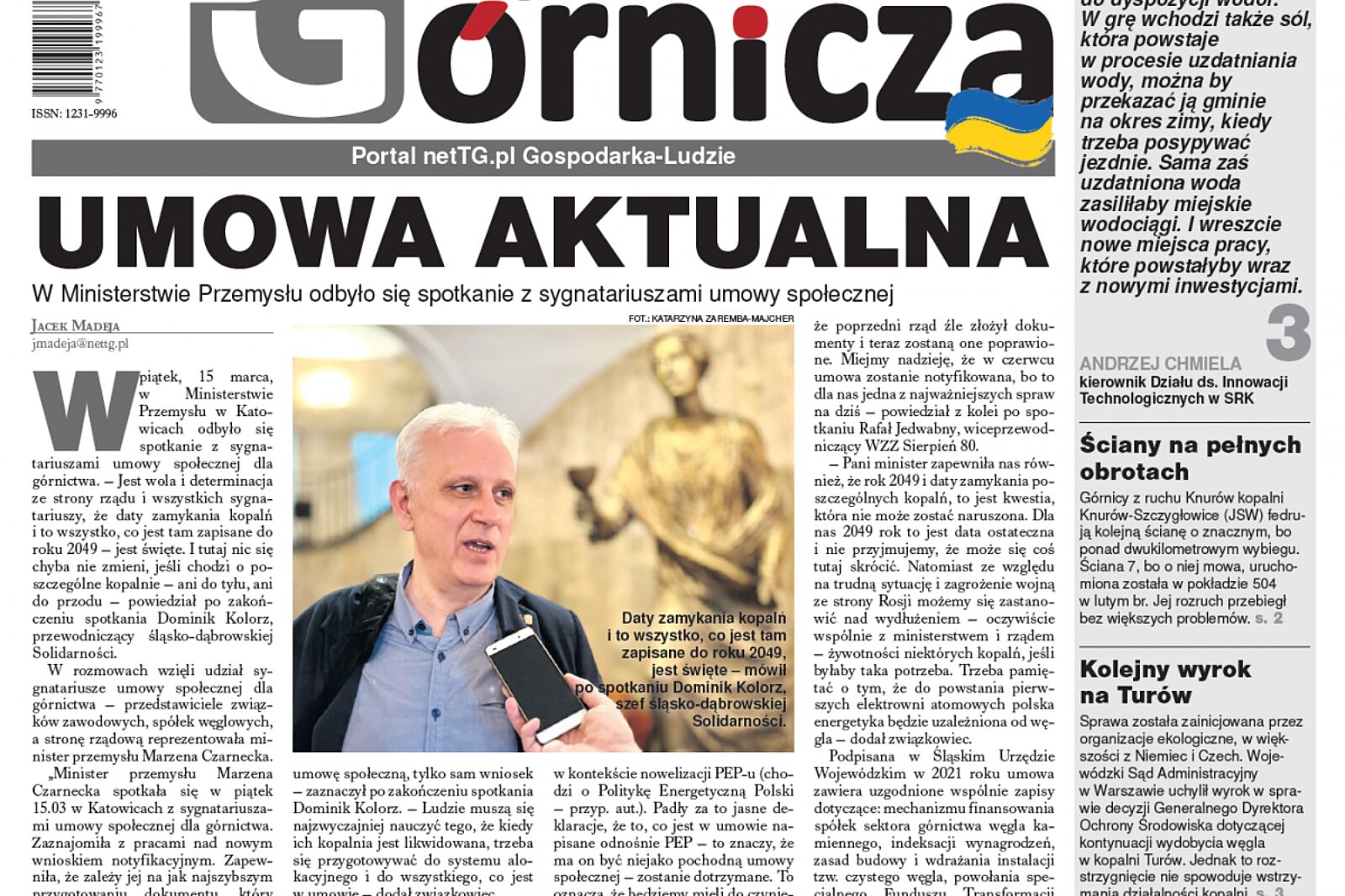 W rozmowach wzięli udział sygnatariusze umowy społecznej dla górnictwa – przedstawiciele związków zawodowych, spółek węglowych, a stronę rządową reprezentowała minister przemysłu Marzena Czarnecka. „Umowa aktualna” to materiał czołówkowy tego wydania.
