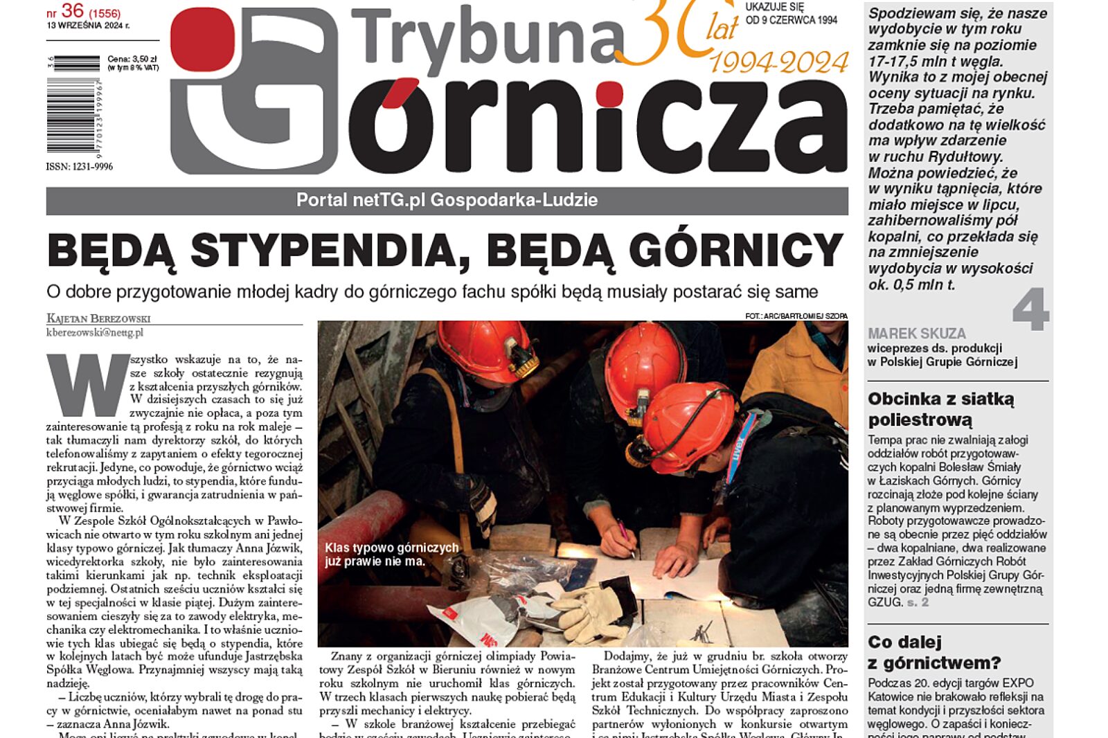 „Będą stypendia, będą górnicy” tym artykułem red. Kajetana Berezowskiego otwieramy najnowsze wydanie Górniczej, które ukaże się w piątek, 13 września 2024 r.