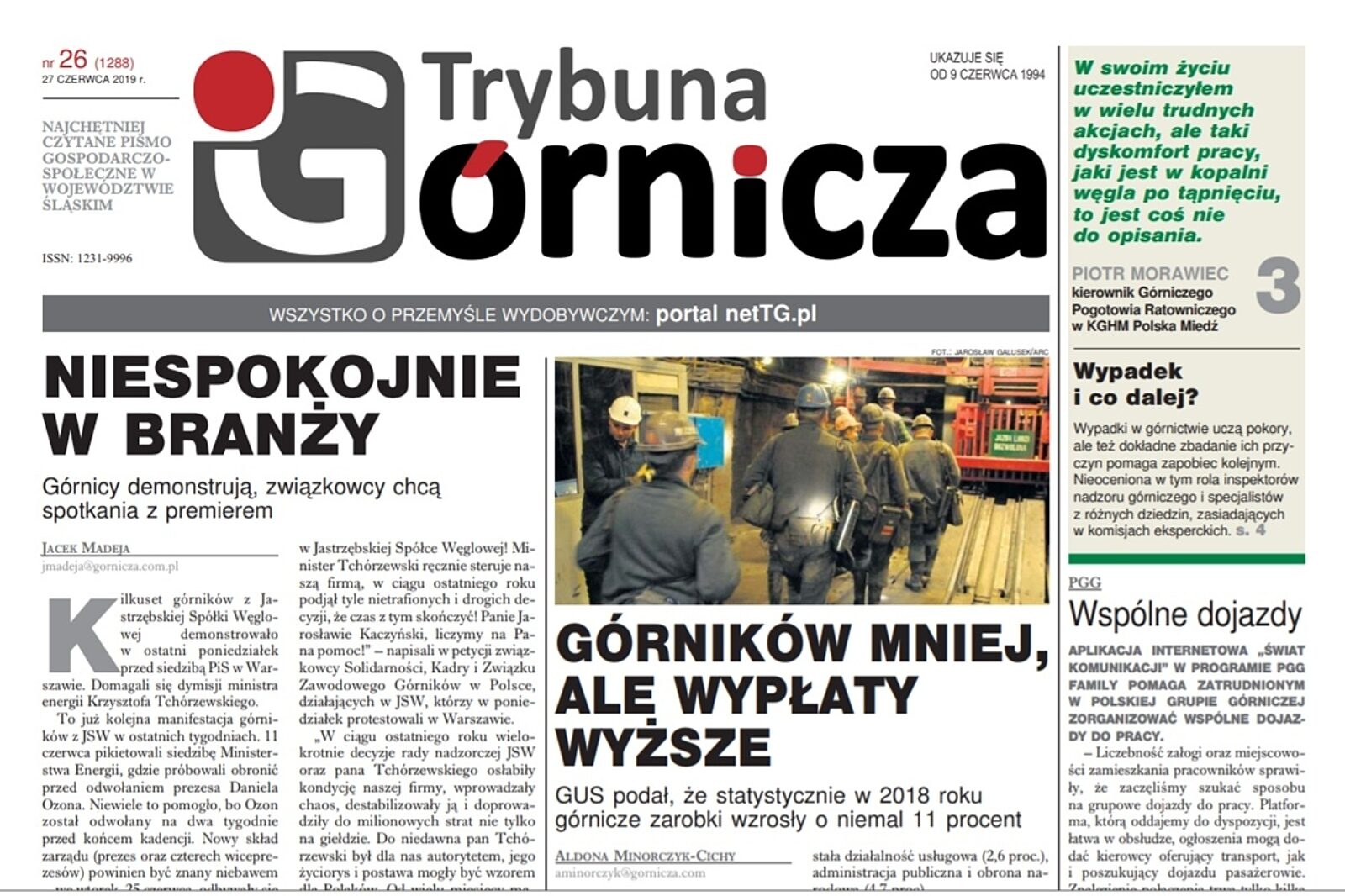 W najbliższy czwartek, 27 czerwca, oddamy do rąk naszych Czytelników najnowszy numer Górniczej. Sporo uwagi poświęcamy w nim napiętej sytuacji w Jastrzębskiej Spółce Węglowej. Górnicy z JSW w tym tygodniu protestowali w Warszawie i złożyli petycję do prezesa Prawa i Sprawiedliwości Jarosława Kaczyńskiego. Górnicy domagają się także przywrócenia dialogu społecznego w branży. Ponadto przyglądamy się zarobkom w górnictwie. Ze statystyk wynika, że w przeciągu ub. r. wzrosły one o 11 proc.