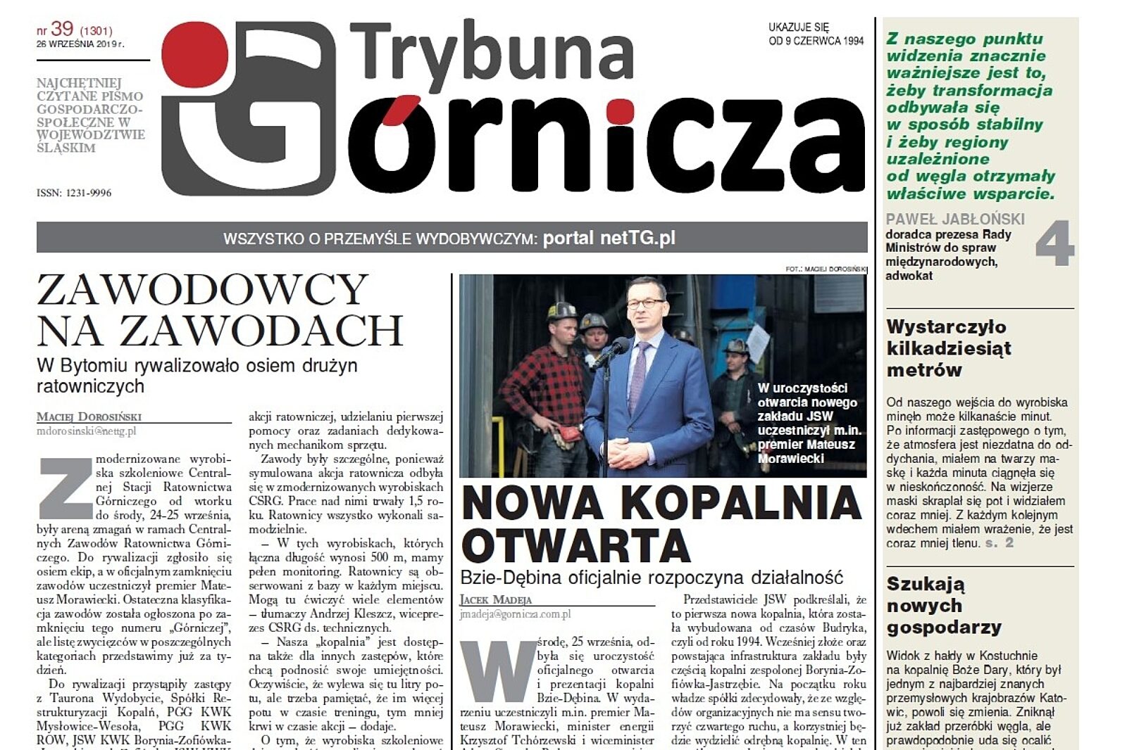 Najnowsza Trybuna Górnicza już w czwartek, 26 września.