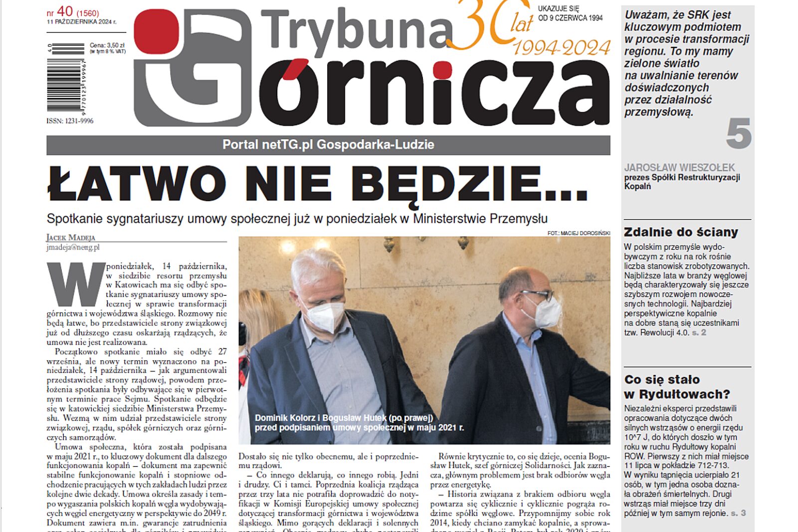 Numery: aktualny i archiwalne Trybuny Górniczej są udostępniane za darmo 30 dni od daty publikacji. W celu dostępu natychmiastowego zachęcamy do zakupu subskrypcji premium https://nettg.pl/premium.