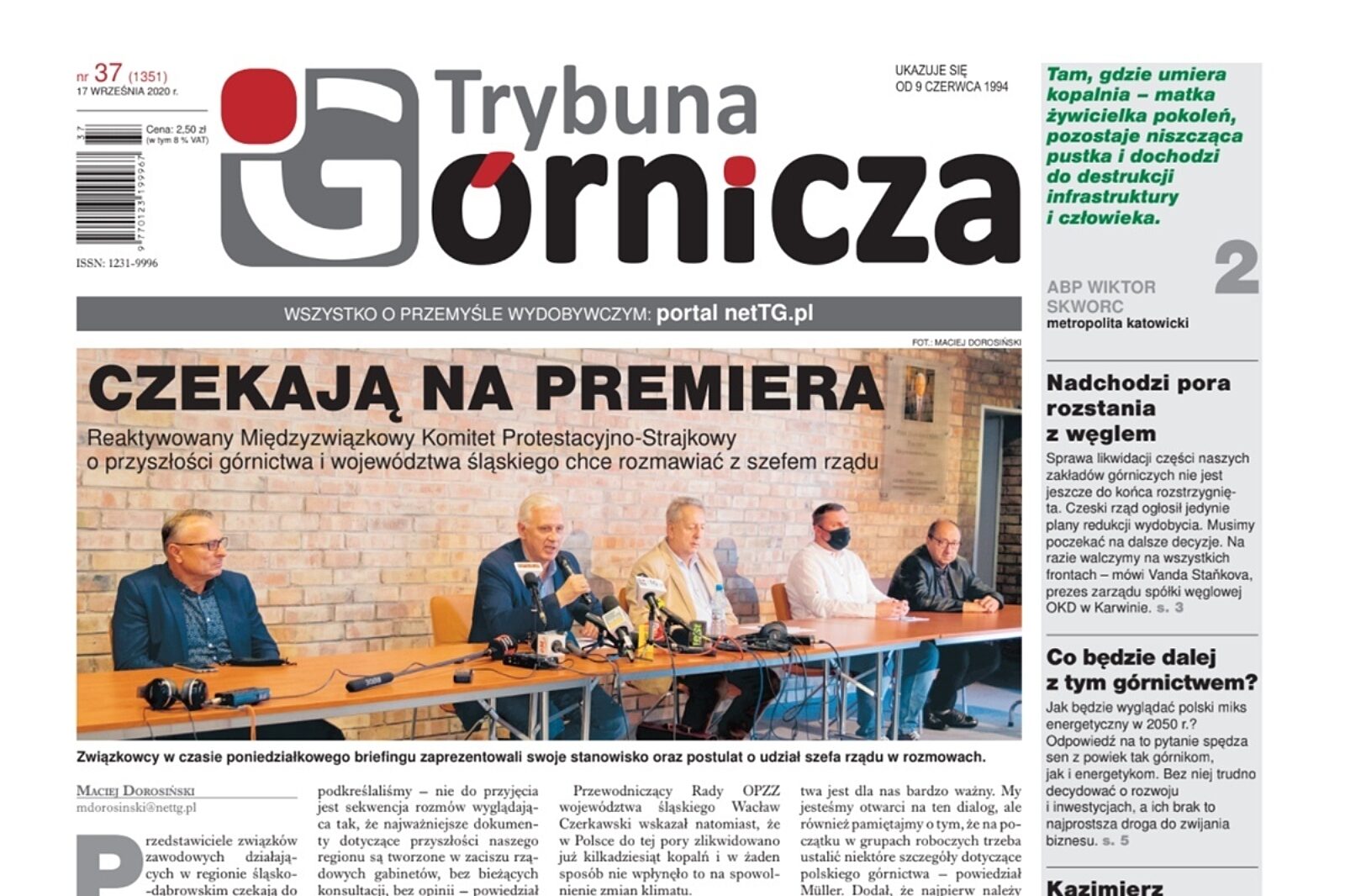 Czy premier Morawiecki przyjedzie na Śląsk i będzie rozmawiać ze stroną społeczną na temat przyszłości górnictwa i energetyki oraz regionu? Na to pytanie wciąż nie poznaliśmy odpowiedzi. Jednak w najnowszym numerze Górniczej - który do rąk Czytelników oddamy w czwartek, 17 września – wyjaśniamy, jakie są oczekiwania strony społecznej i jak prezentują się plany rządu.