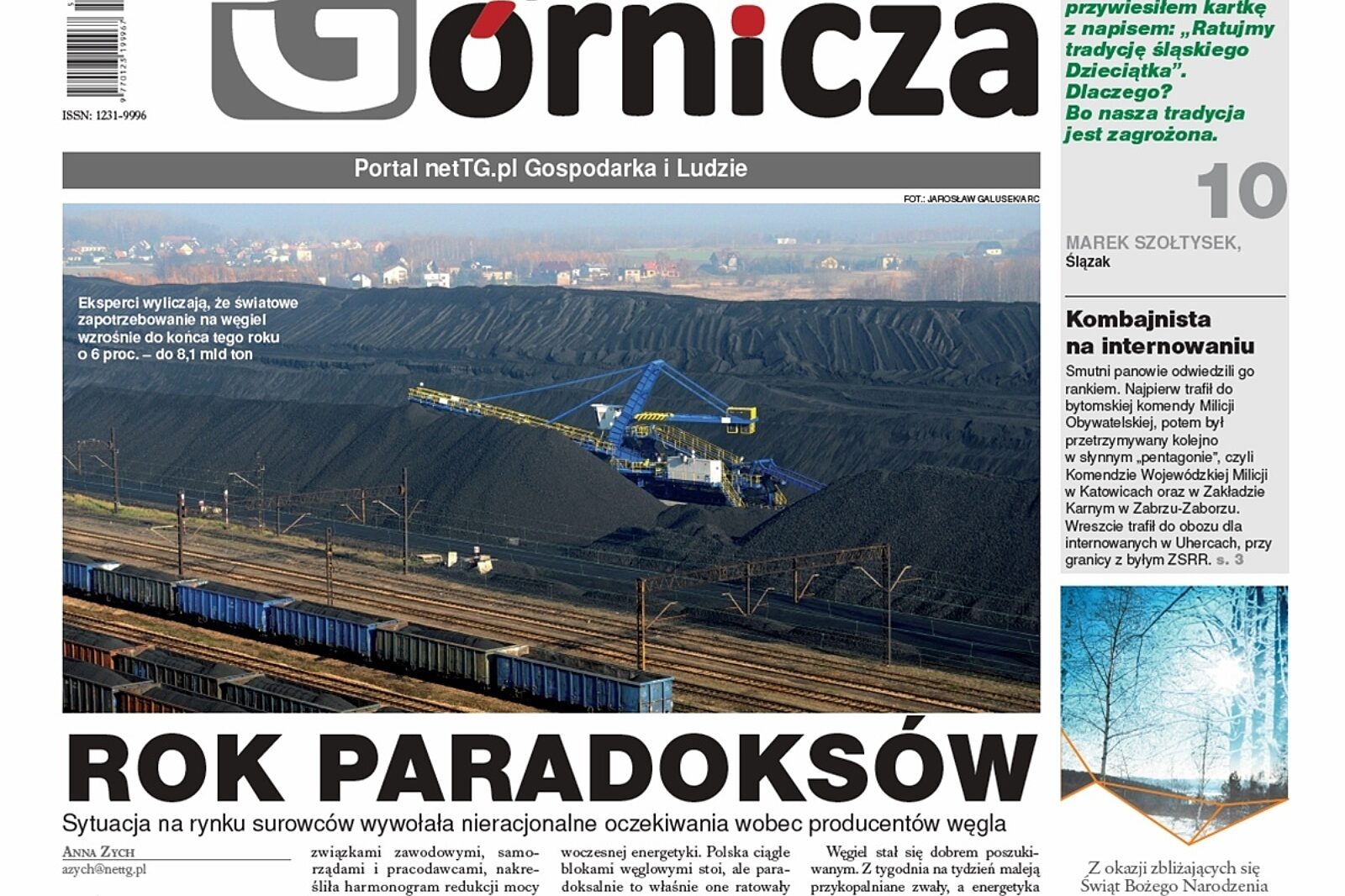 „Stara prawda mówi, że nie da się równocześnie zjeść ciastka i mieć ciastko. Tymczasem skrajnie różne wymagania stawiane przed górnictwem węglowym zdają się nie uwzględniać logicznych przesłanek” - pisze w czołówkowym artykule pt. „Rok paradoksów” Anna Zych.