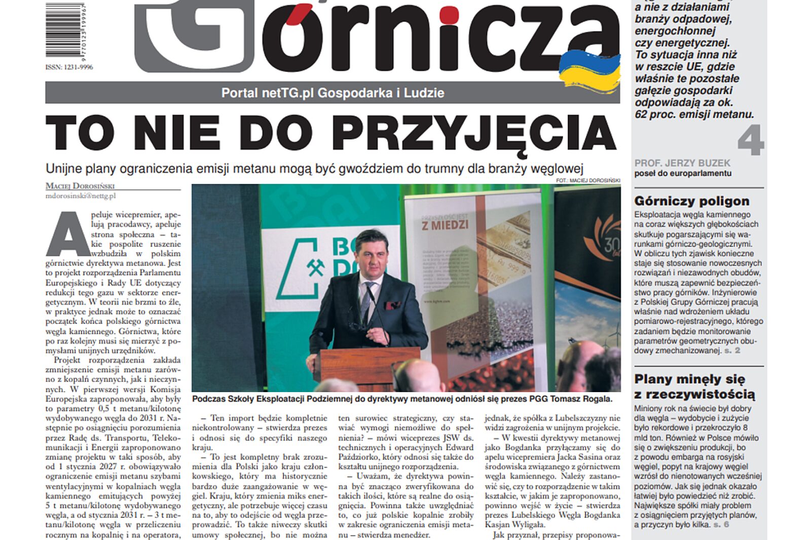 Nowym przepisom są poświęcone także teksty w środku numeru. Na stronie trzeciej przedstawiamy wyliczenia przedstawicieli PGG dotyczące wysokości kar, jakie spółka musiałaby zapłacić po wejściu w życie nowych przepisów oraz harmonogram przyspieszonej likwidacji kopalń spółki. Natomiast w artykule pt. „Mają sposób na metan” przedstawiamy realizowany przez Zakład Górniczych Robót Inwestycyjnych Polskiej Grupy Górniczej innowacyjny projekt odmetanowania pokładów z zastosowaniem technologii podziemnych wierceń kierunkowych, który doskonale się sprawdza.