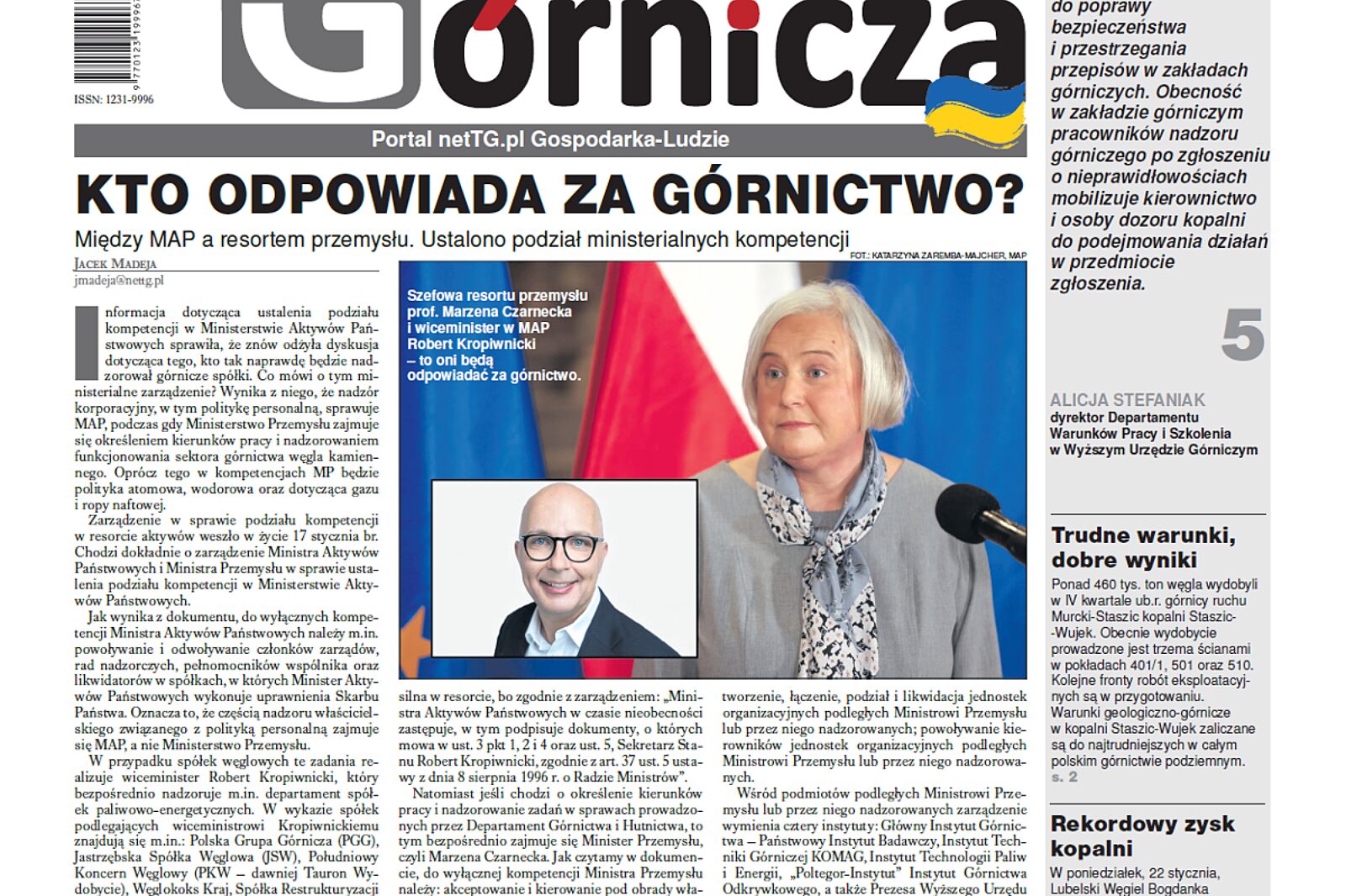Tekst otwierający tygodnik poświęcamy kwestii nadzoru nad branżą górnictwa węgla kamiennego. Informacja dotycząca ustalenia podziału kompetencji w Ministerstwie Aktywów Państwowych sprawiła, że znów odżyła dyskusja dotycząca tego, kto tak naprawdę będzie nadzorował górnicze spółki. Co mówi o tym ministerialne zarządzenie? Wynika z niego, że nadzór korporacyjny, w tym politykę personalną, sprawuje MAP, podczas gdy Ministerstwo Przemysłu zajmuje się określeniem kierunków pracy i nadzorowaniem funkcjonowania sektora górnictwa węgla kamiennego. Oprócz tego w kompetencjach MP będzie polityka atomowa, wodorowa oraz dotycząca gazu i ropy naftowej. O szczegółach piszemy w tekście „Kto odpowiada za górnictwo?”.