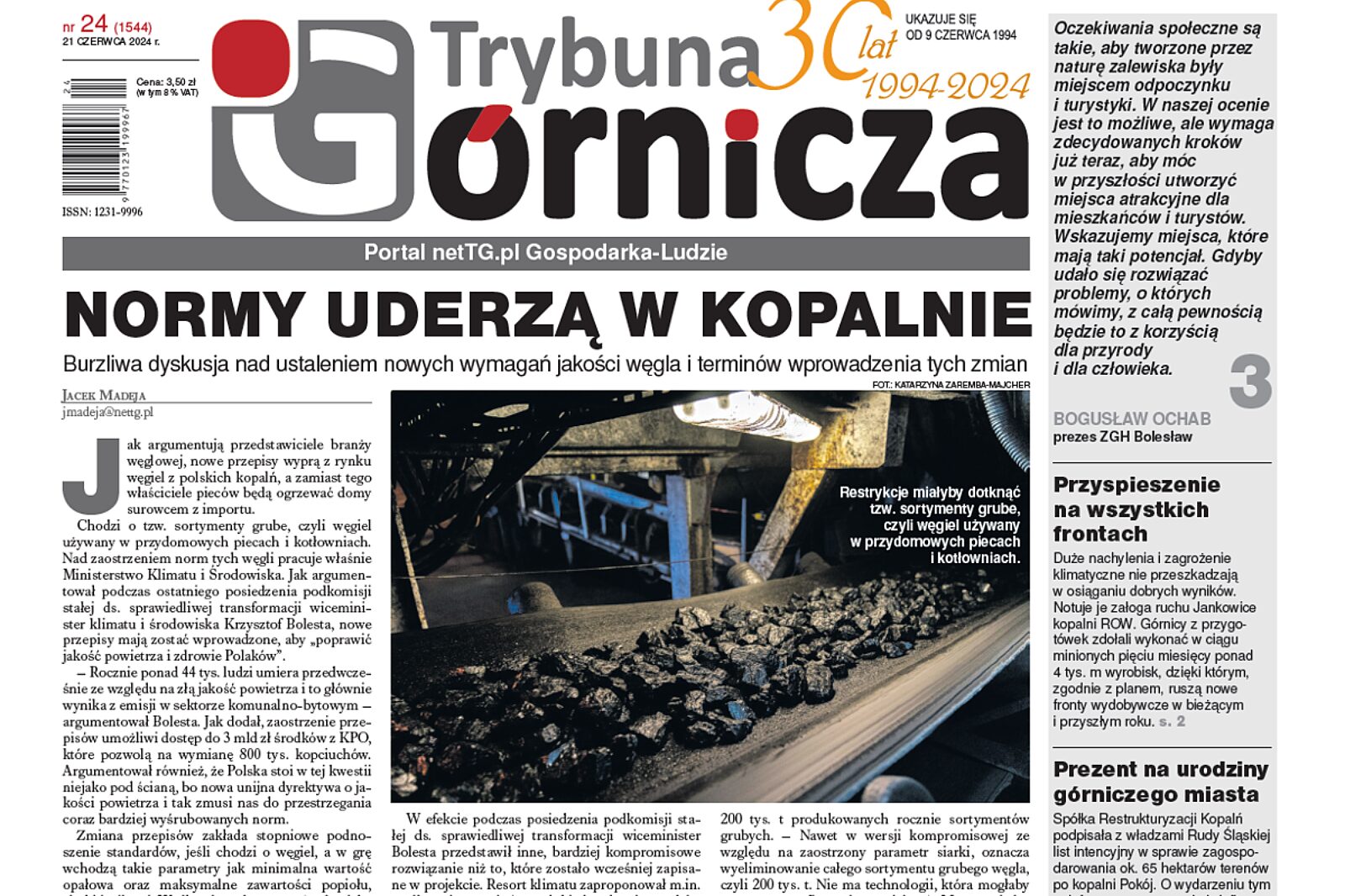 W piątek, 21 czerwca, ukaże się nowe wydanie Trybuny Górniczej. W numerze piszemy m.in. o tym, jak planowane zaostrzenie jakościowych norm węgla może wpłynąć na przyszłość polskich kopalń.