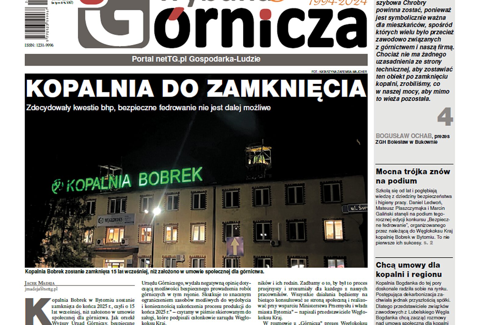 Numery: aktualny i archiwalne Trybuny Górniczej są udostępniane za darmo 30 dni od daty publikacji. W celu dostępu natychmiastowego zachęcamy do zakupu subskrypcji premium https://nettg.pl/premium.