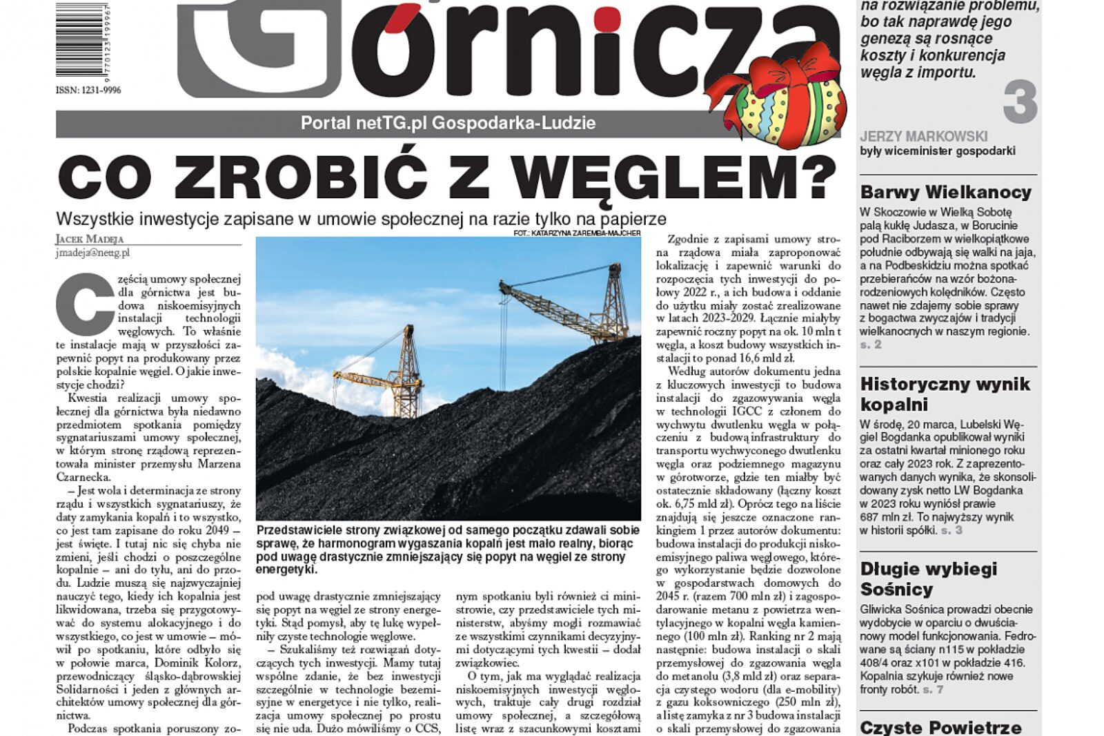 Co zrobić z węglem zalegającym na zwałowiskach? Wszystkie inwestycje zapisane w umowie społecznej na razie tylko na papierze – pisze w swym artykule, otwierającym kolejne (13.), tym razem wielkanocne wydanie Górniczej, red. Jacek Madeja.
