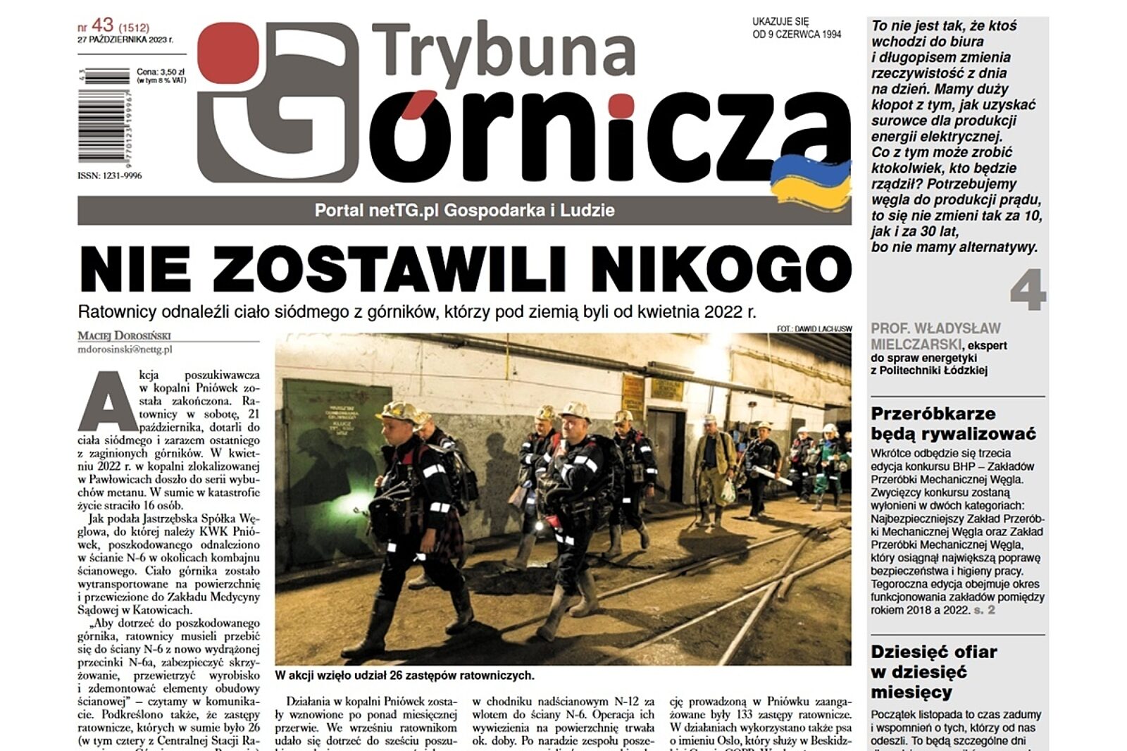 Numery: aktualny i archiwalne Trybuny Górniczej są udostępniane za darmo 30 dni od daty publikacji. W celu dostępu natychmiastowego zachęcamy do zakupu subskrypcji premium: https://nettg.pl/premium