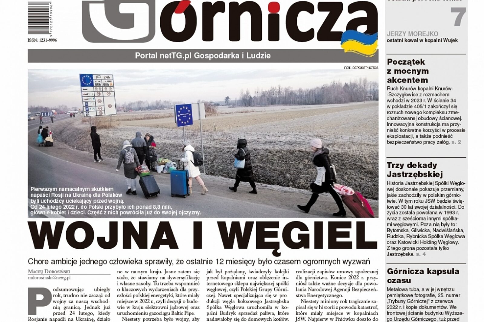 „Podsumowując ubiegły rok, trudno nie zacząć od wojny za naszą wschodnią granicą. Jednak już przed 24 lutego, kiedy Rosjanie napadli na Ukrainę, działo się dużo. To ten akt nieuzasadnionej agresji wywołał reakcję łańcuchową, z której efektami musimy mierzyć się wszyscy. (…) Wojna, wiadomo, zmieniła znacząco świat, w którym funkcjonowaliśmy do tej pory. Zmieniła, a w zasadzie na nowo zdefiniowała politykę surowcową na świecie i sprawiła, że węgiel wrócił do łask” – rozpoczyna się czołówkowy tekst pt. „Wojna i węgiel”. Jego kontynuacją jest również kalendarium w środku numeru z najważniejszymi wydarzeniami dla branży górniczej, które miały miejsce w 2022 roku.