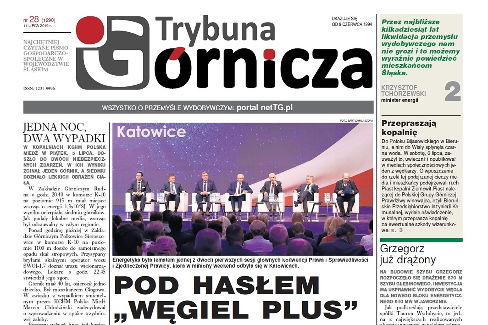 W najnowszej Górniczej, którą do rąk naszych Czytelników oddamy w czwartek, 11 lipca, wyjaśniamy co kryje się pod hasłem „Węgiel Plus”. Padło ono na konwencji programowej Prawa i Sprawiedliwości, która odbyła się w miniony weekend w Katowicach. Tematy związane z przyszłością polskiej energetyki oraz Śląska były także poruszane w czasie partyjnej konferencji i o nich także piszemy w nowym numerze.