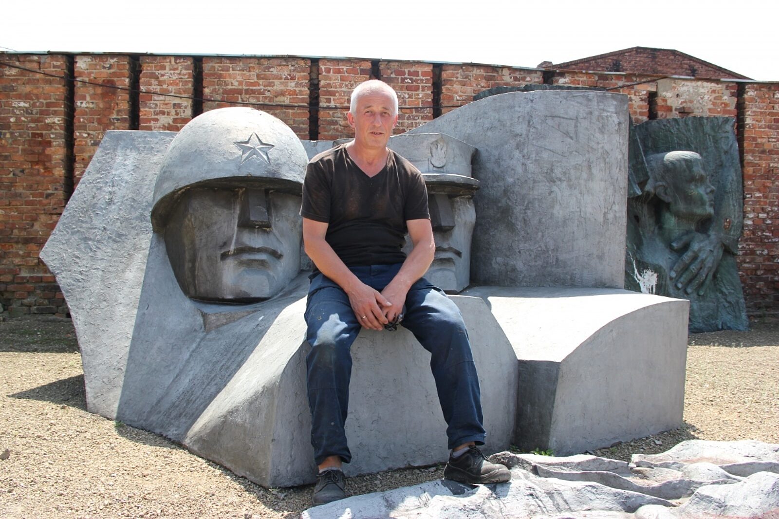 Piotr Twierdziński odpoczywa po pracy przy pomniku braterstwa broni w Muzeum PRL-u w Rudzie Śląskiej