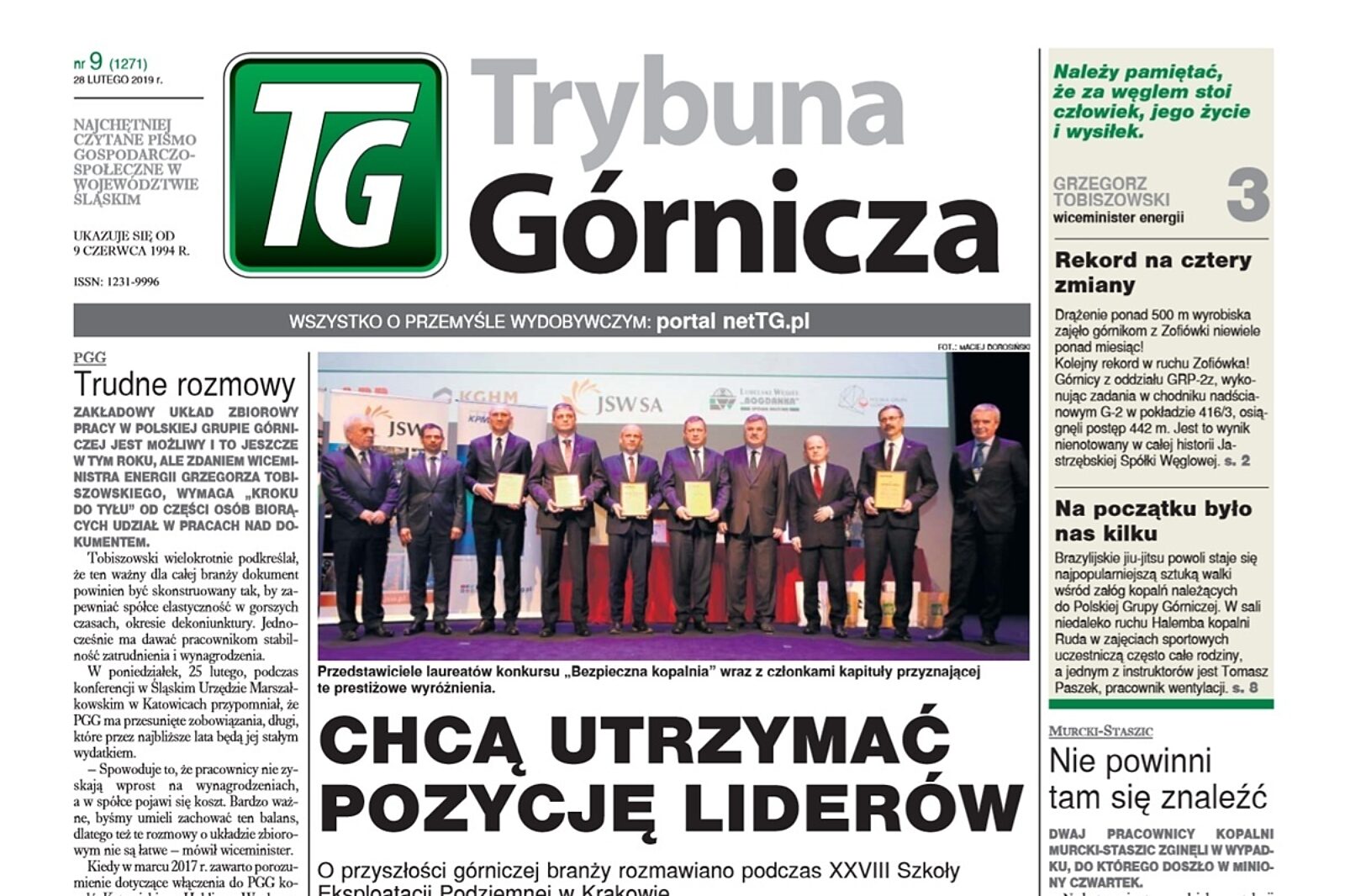 Szkoła Eksploatacji Podziemnej to główny temat nowego wydania Trybuny Górniczej, które do rąk Czytelników trafi w najbliższy czwartek, 28 lutego. Na konferencji, która odbyła się w Krakowie, poznaliśmy m.in. najbezpieczniejsze kopalnie oraz triumfatorów Turnieju Wiedzy Górniczej, któremu patronują redakcje Trybuny Górniczej i portalu netTG.pl Gospodarka - Ludzie. Podpisano tam także porozumienie pomiędzy spółkami wydobywczymi. O tym także w nowym numerze.