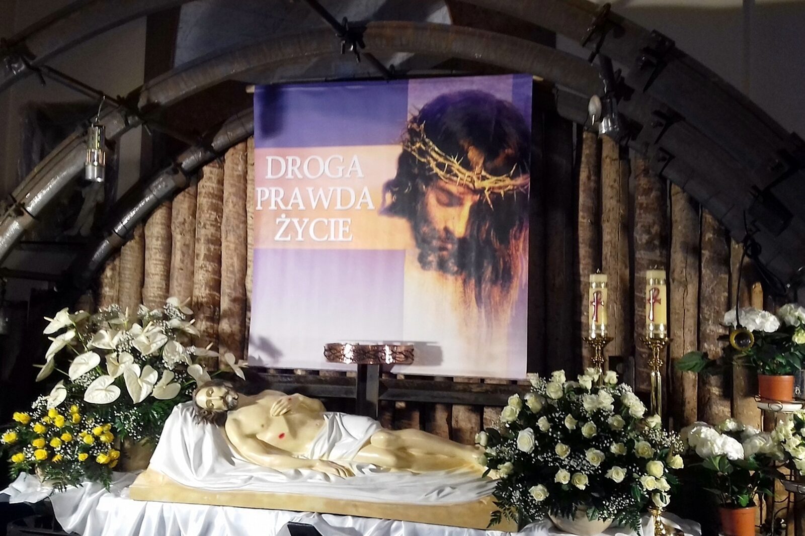 W ub.r. figura złożonego do grobu Jezusa spoczęła na wagonie do transportu drewna, tzw. drzewiarce ustawionej pod odrzwiami łukowymi obudowy stalowej, stosowanej przy drążeniu wyrobisk korytarzowych. Całość ozdobiły bryły węgla, lampy górnicze i drewniane stojaki.
