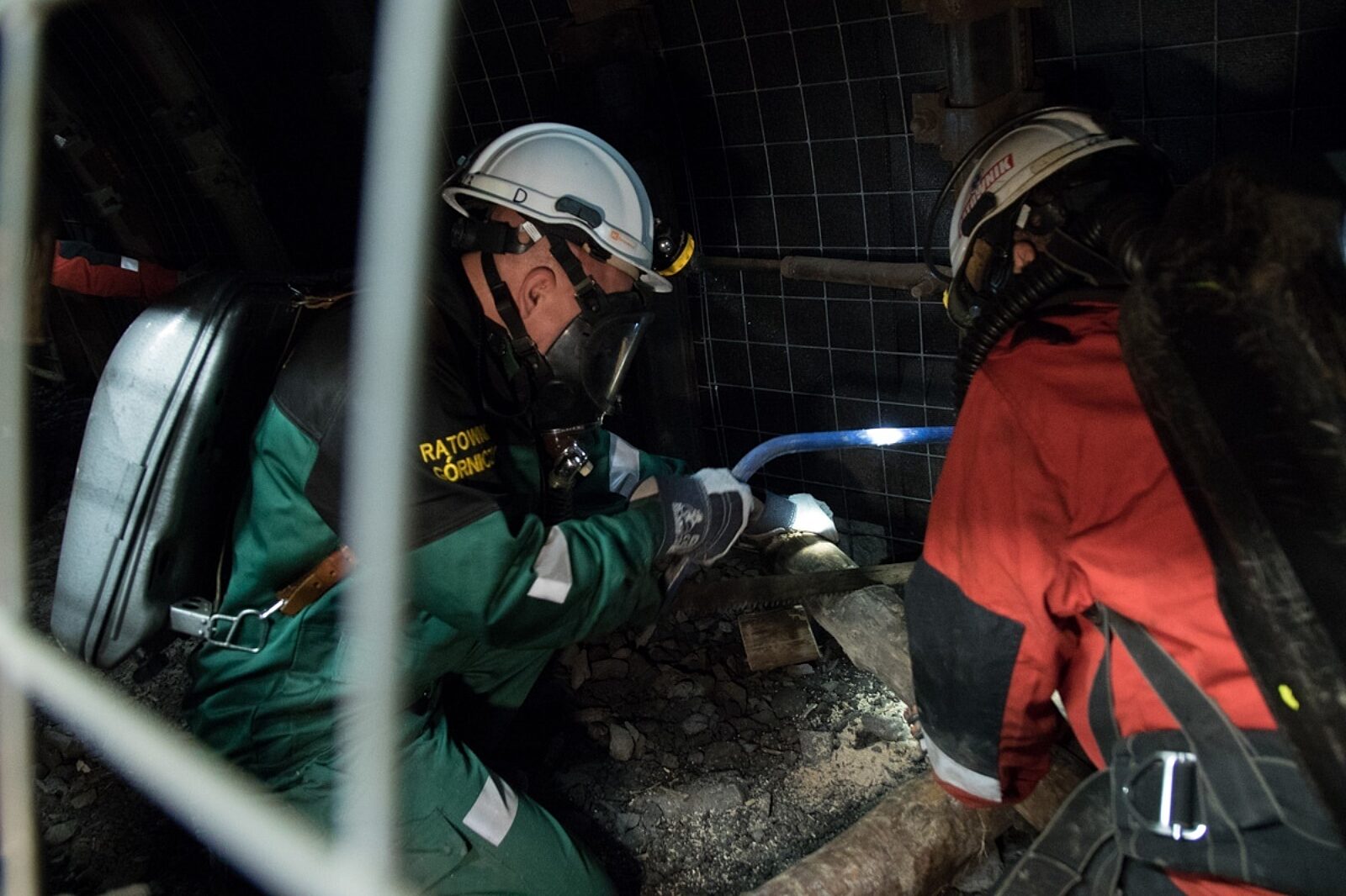 W czasie przejścia przez fragment wyrobiska szkoleniowego musieli w pełnym rynsztunku wykonywać prace konieczne w czasie akcji ratowniczej