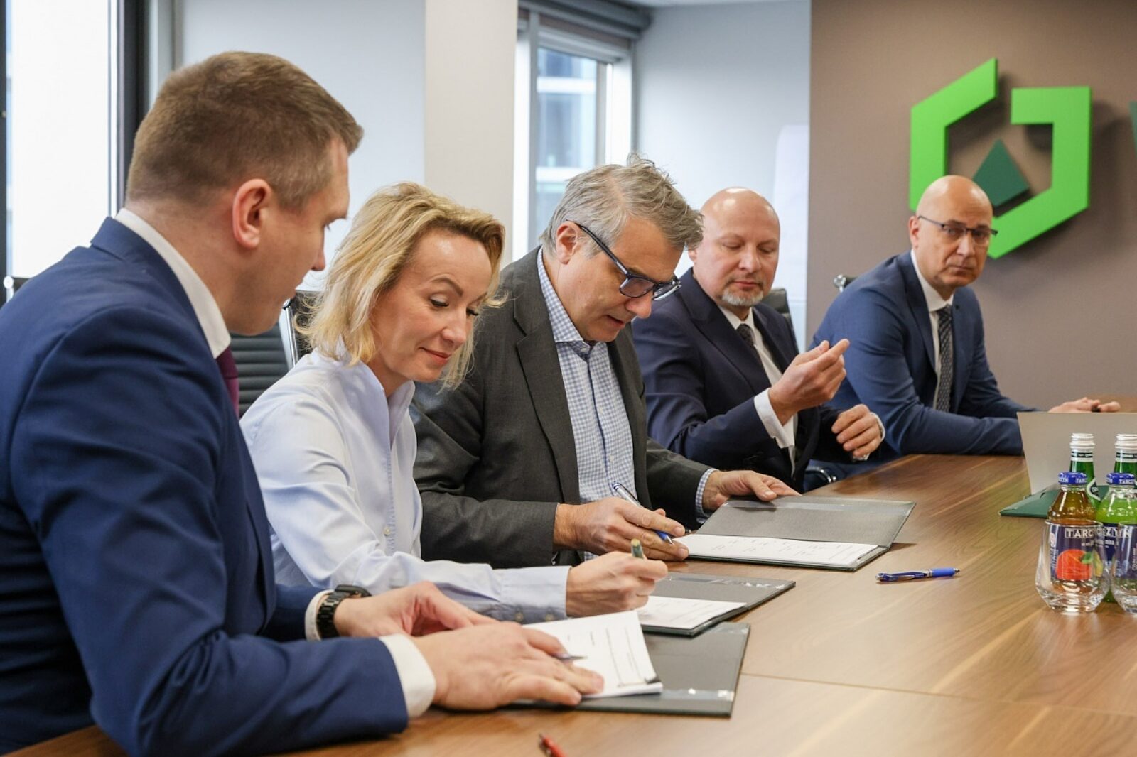 Tomasz Ślęzak, prezes zarządu Węglokoksu oraz Łukasz Jabłoński, prezes HPP i HPK podczas konferencji na temat umowy