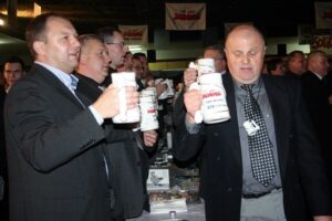 Po powitaniu wypełniającej po brzegi cechownię biesiadników gospodarz, Adam Byzdra zarządził wprowadzenie sztandaru związku i odśpiewanie hymnu państwowego. Zaraz potem sala huknęła Byzdrze Sto lat... Powody były dwa. Przewodniczący związku otrzymał statuetkę "W podziękowaniu za Solidarność", nadawaną przez konwent seniorów Solidarności przy Instytucie Lecha Wałęsy. Laureatowi wręczył ją Tadeusz Jedynak, przewodniczący konwentu.