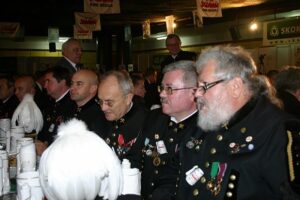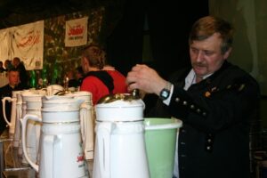 Sygnałem do nieskrępowanej zabawy było wejście między długie rzędy stołów piwolejów z pełnymi dzbanami złocistego napoju. Odtąd cechownia raz po raz wybuchała śmiechem i rozlegała głośnym śpiewem. Repertuaru nie zabrakło, bo każdy gwarek został zaopatrzony w śpiewnik z aż 64 pozycjami. Momentami było więc patriotycznie, częściej biesiadnie i frywolnie. Śpiew przeplatały jędrne żarty i konkursy. O zwycięstwie lewej lub prawej ławy bezapelacyjnie przesądzało nieomylne prezydium. Jego wyroków i tak nikomu nie przyszłoby do głowy kwestionować, bo cała punktacja była traktowana z przymrużeniem oka.