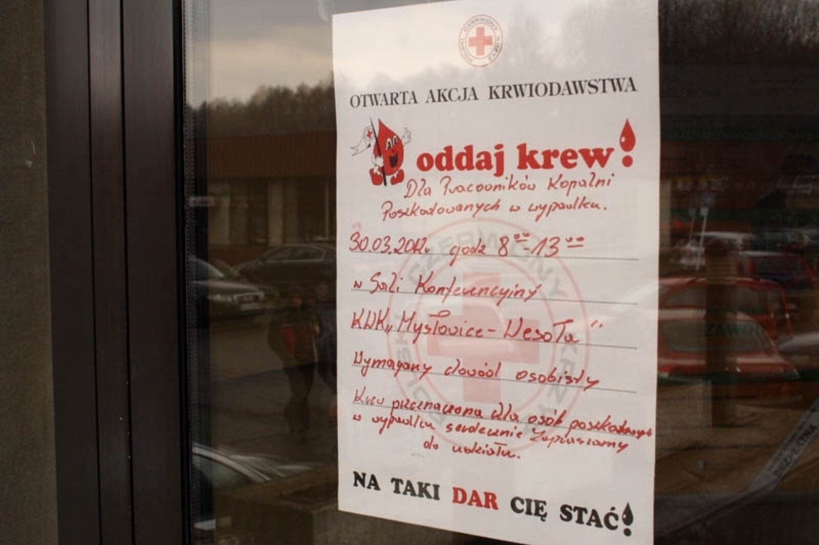 Planowana akcja krwiodawstwa, organizowana dla rannych w wypadku busa, na czwartek 29 marca (w godzinach 8.00 - 13.00) została przesunięta na piątek 30 marca - informuje biuro prasowe Katowickiego Holdingu Węglowego. Powód: nie można było w ciągu dnia uruchomić punktu poboru krwi z przyczyn technicznych, niezależnych od kopalni.