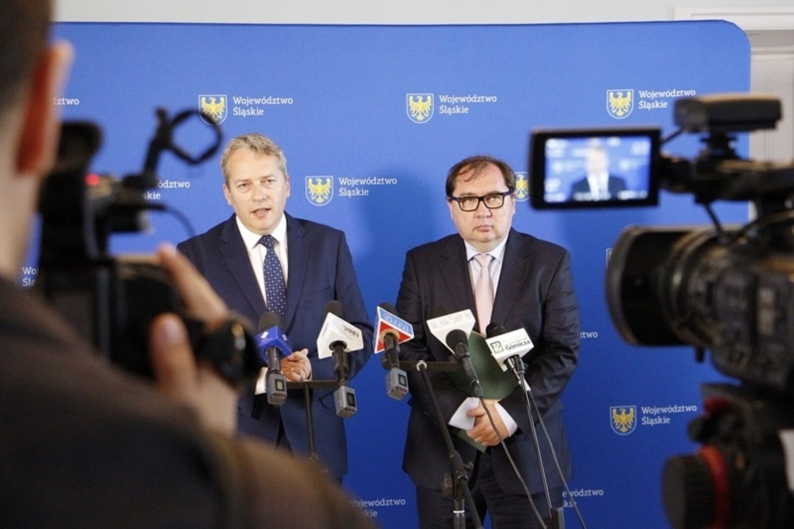 Z dziennikarzami spotkali się marszałek woj. śląskiego Wojciech Saługa i prezes WFOŚiGW Andrzej Pilot