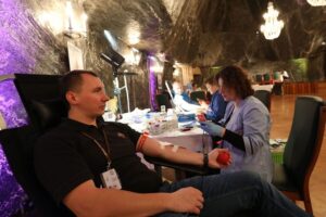 - Co minutę do ratowania ludzkiego zdrowia i życia potrzebny jest litr krwi, czyli aż dwóch dawców. Tym większe znaczenie ma frekwencja podczas podziemnej akcji. – Zainteresowanie przerosło nasze oczekiwania – przyznaje Adam Gawlik, przewodniczący MK NSZZ Solidarność przy KS Wieliczka. – Planowaliśmy, że pobieranie krwi zakończy się po 6 godzinach, a tymczasem trwało godzinę dłużej. To wspaniałe, że tak wiele osób postanowiło dołączyć do naszego przedsięwzięcia. Nie o rekordy jednak chodzi, lecz o konkretną pomoc liczoną w litrach oddanej krwi.