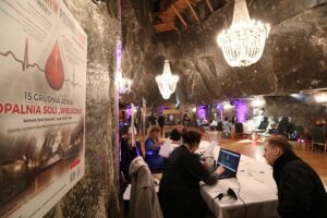 Było 163 chętnych do oddania krwi w akcji zorganizowanej przez Centrum Krwiodawstwa i Krwiolecznictwa w Krakowie oraz Solidarność przy Kopalni Soli Wieliczka w jej podziemiach. Lekarze ostatecznie lekarze dopuścili 141 osób. Oddały w czwartek (15 grudnia) 63,5 l krwi.