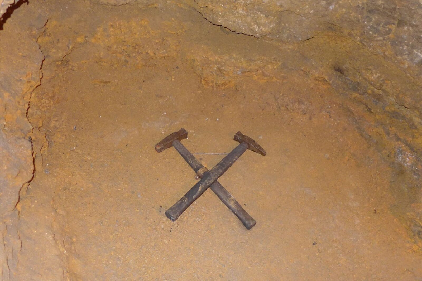 To pierwsze – zwane też klinem, jest z jednej strony szpiczaste, a po przeciwnej płaskie. Ten drugi – to młot zwany też podbijakiem, ma łukowaty kształt i był używany do podbijania żelazka. Z ich skrzyżowania w odpowiedni sposób powstała kupla – godło górnicze. Perlik leży po lewej stronie i jest pod żelazkiem.