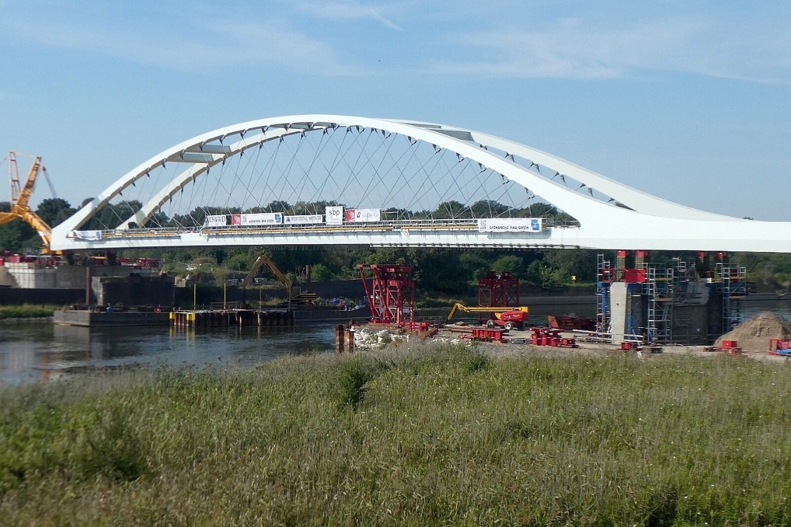 Zasadniczą część nowego mostu zbudowano najpierw na niemieckim brzegu, a dopiero potem, pod koniec lata 2023 r., umieszczono na filarach nad nurtem Odry. Wykorzystując przerwę w ruchu, przy okazji PKP PLK wyremontowały także most nad rzeką Wartą w Kostrzynie nad Odrą, znajdujący się pomiędzy stacją Kostrzyn a granicznym mostem na Odrze, a także dwa inne mosty w ciągu nasypu kolejowego prowadzącego w stronę granicy.