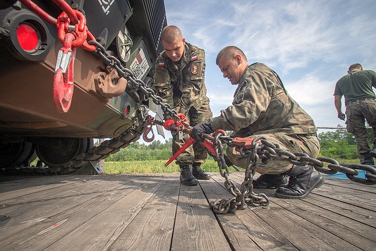 – Traktujemy ten element jak ćwiczenie taktyczne. Wymaga on wielkiej precyzji szczególnie od kierowców, bo rozstaw gąsienic jest nieco większy niż szerokość samego wagonu. Przepisy mówią jasno, że po obu stronach gąsienice mogą wystawać za krawędź platformy tylko po pięć centymetrów - podkreśla por. Artur Wróbel, rzecznik prasowy 1 WBPanc.
