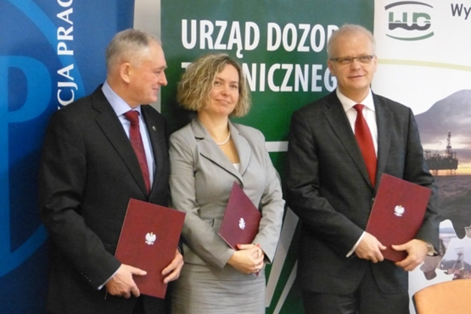 Warszawskie spotkanie zakończyło się podpisaniem dwustronnych porozumień - PIP z WUG, UDT z WUG oraz UDT z PIP (na zdjęciu od lewej: Marek Walczak - prezes UDT, Iwona Hickiewicz - Główny Inspektor Pracy oraz Piotr Litwa - prezes WUG