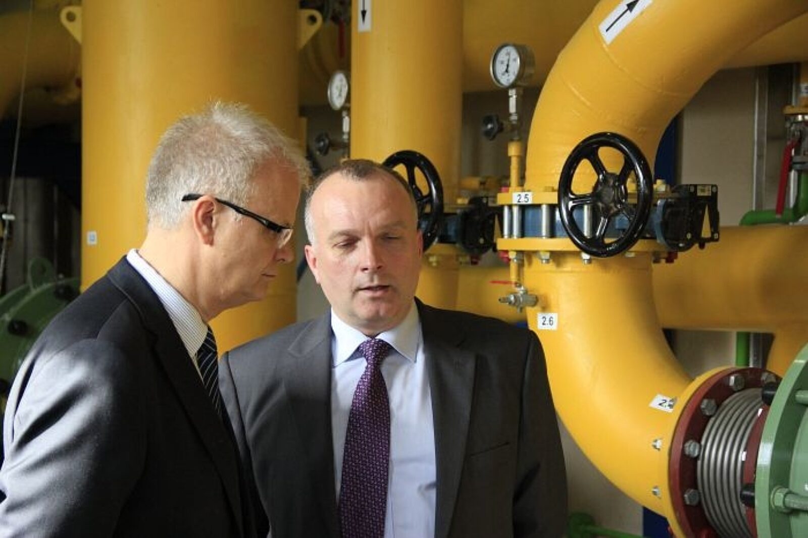 Piotr Litwa, szef WUG podkreślał konieczność budowy nowoczesnej stacji odmetanowania po analizie przyczyn tragedii w ruchu Śląsk z 2009 r. (na zdjęciu w nowej hali dmuchaw w rozmowie z Adamem Zelkiem, dyrektorem kopalni Wujek)