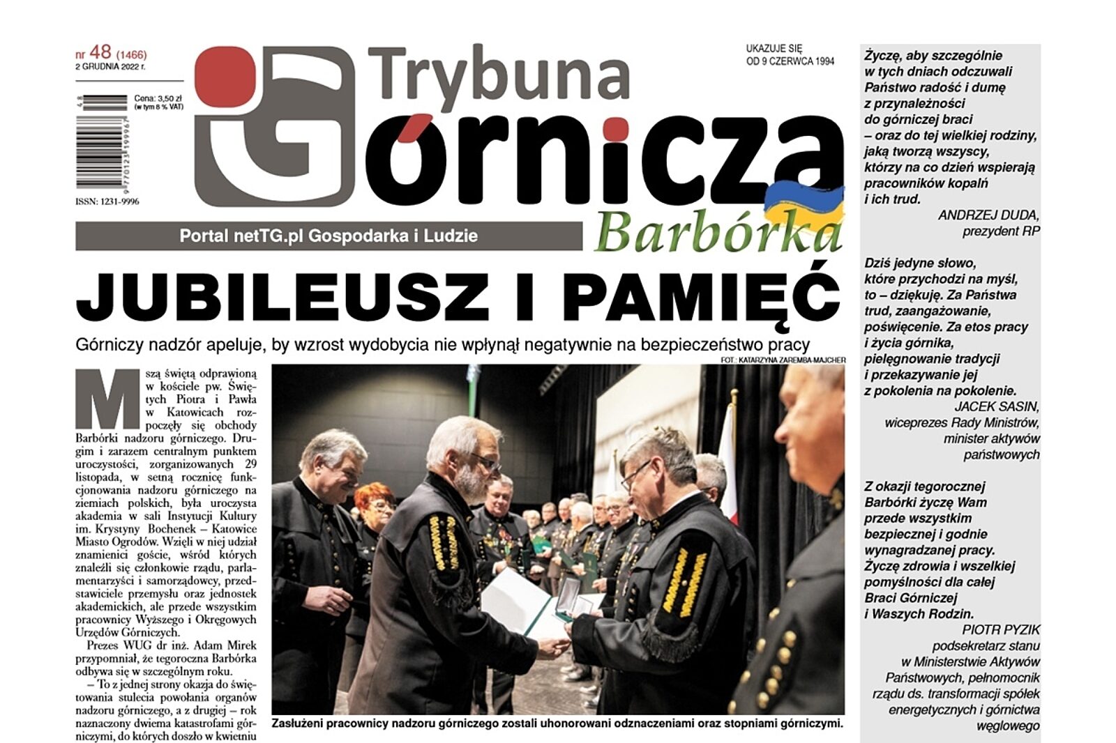 W piątek, 2 grudnia, do rąk Naszych Czytelników oddamy wyjątkowe wydanie Trybuny Górniczej. Wyjątkowe bo barbórkowe i wypełnione ogromem życzeń dla wszystkich przedstawicieli górniczego stanu.