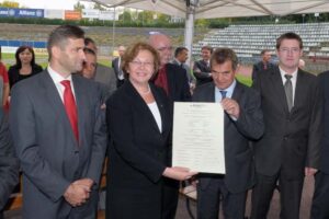 Podczas uroczystości podpisano akt erekcyjny, którego sygnatariuszami są: Małgorzata Mańka-Szulik, jej zastępca Krzysztof Lewandowski, prezes spółki Stadion w Zabrzu Tadeusz Dębicki, prezes Polimex-Mostostal Konrad Jaskóła oraz prezes GMT Tomasz Pilch.