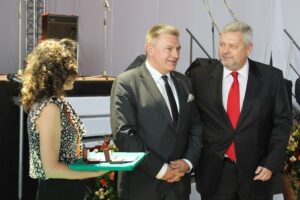 Później wręczone zostały odznaczenia firmowe. W gronie uhonorowanych znaleźli się m.in. Małgorzata Mańka-Szulik - prezydent Zabrza oraz Wiesław Janiszewski - burmistrz miasta i gminy Czerwionka-Leszczyny. Samorządowcy otrzymali honorową złota odznakę - Zasłużony dla Kombinatu Koksochemicznego Zabrze.