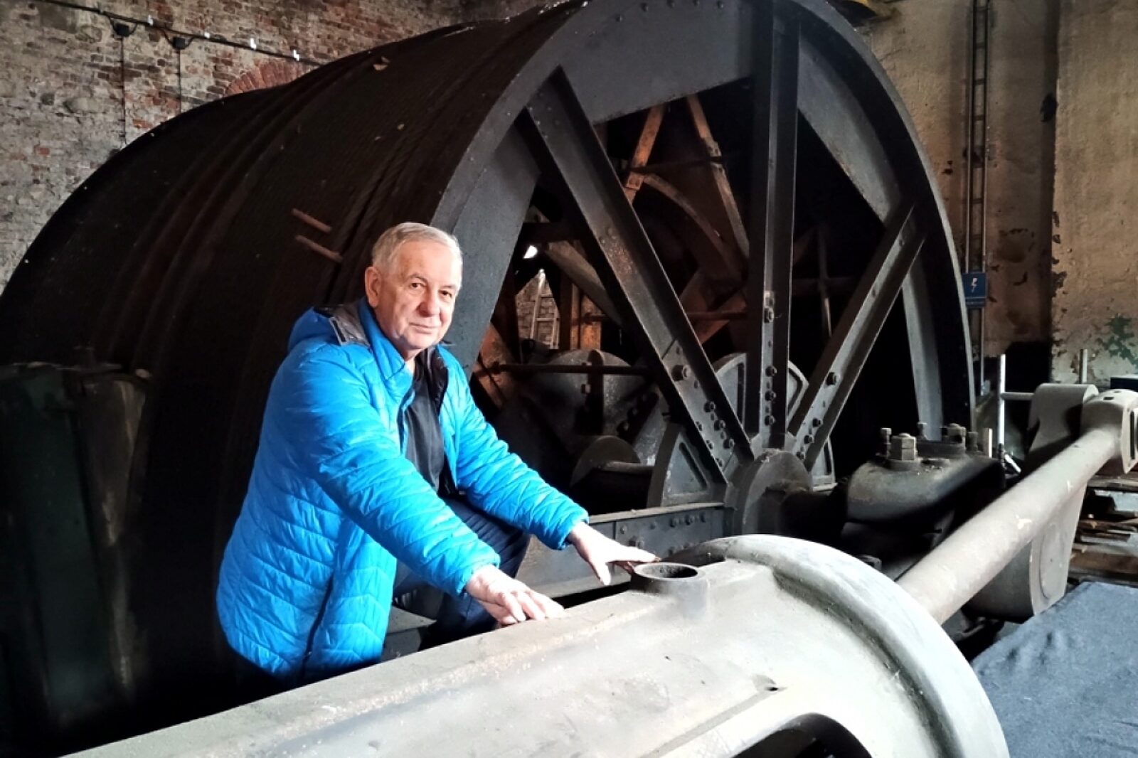 Jerzy Kasperek przy maszynie parowej w budynku dawnej kopalni Karol w Rudzie Śląskiej-Orzegowie