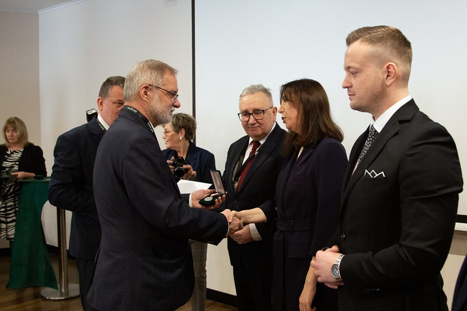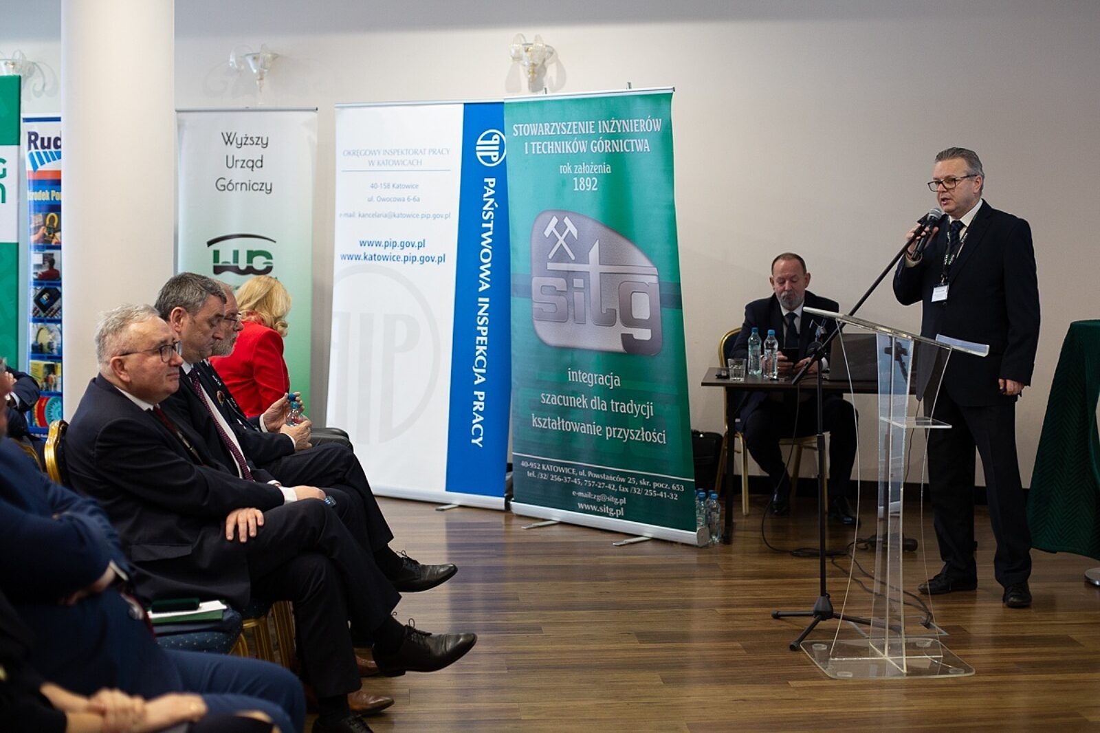 W otwarciu konferencji uczestniczyli wiceministrowie aktywów państwowych (od lewej) Piotr Pyzik i Marek Wesoły. Obowiązki gospodarza pełnił natomiast prezes WUG Adam Mirek (pierwszy z prawej)