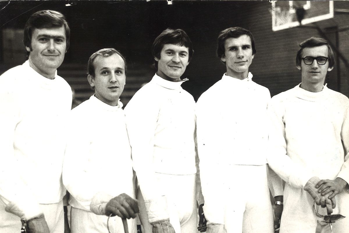 Drużyna mistrzów szermierki (od lewej): Antoni Bartecki, Maciej Chwałek, Edward Korfanty, Krzysztof Brol i Jan Kiermasz. Zdj.: arch. dom.