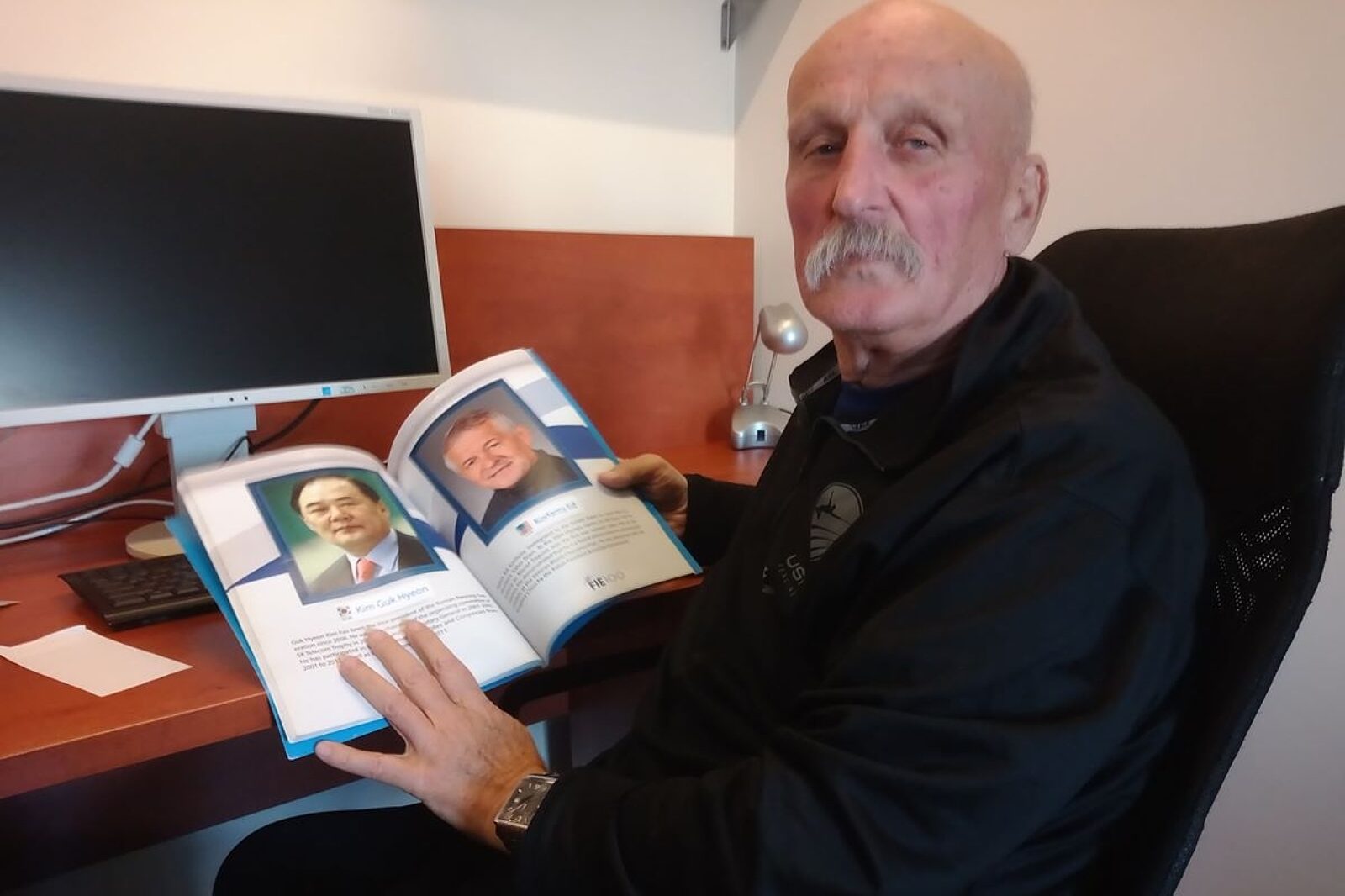 – Edward był człowiekiem niesamowitym. On kochał szermierkę. Prowadził szkółkę szermierczą w Queensie. Następnie pracował w kilku mniejszych klubach, w końcu dostał propozycję kontraktu z Notre Dame University i Akademii Szermierczej w Indianie. Prowadzi klub szermierczy w Portland w stanie Oregon. Klub ma 120 stałych członków. Rocznie na zajęciach przewija się ponad 360 szermierzy. Dowodem trenerskiego talentu Eda są dwa złote medale olimpijskie zawodniczki Mariel Zagunis. Dziś jest już po siedemdziesiątce, ale cały czas żyje szermierką – opowiada Maciej Chwałek, prezentując zdjęcie drużyny szablistów GKS Katowice, która w 1979 r. sięgnęła po złoty medal mistrzostw Polski.
