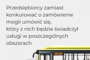 Prezes UOKiK zdobył dowody (m.in. podczas przeszukań w siedzibach przewoźników), wskazujące na to, że część uczestników przetargu mogła zmówić się, aby wyeliminować konkurencję i podzielić między sobą intratne zamówienie. Przedsiębiorcy uzgodnili, że utworzą konsorcja, które będą startowały w przetargu. Utworzenie konsorcjum nie jest prawnie niedozwolone. Niedopuszczalna jest natomiast sytuacja, w której przedsiębiorcy składający oferty w ramach konsorcjów ustalają ich składy oraz to, kto z nich uzyska zamówienie w danej części przetargu. Tak mogło być w tej sprawie. Informacje uzyskane przez Prezesa UOKIK, m.in. zawarte umowy oraz korespondencja mailowa, świadczą o tym, że przewoźnicy mogli koordynować swoje działania, tak aby mieć pewność co do tego, kto wygra poszczególne części przetargu i będzie świadczyć usługi na ustalonych pomiędzy sobą obszarach. Dzięki temu mogli zagwarantować sobie, że nadal będą działali w dotychczas obsługiwanych częściach aglomeracji, zamiast rywalizować o to pomiędzy sobą warunkami w przetargu.